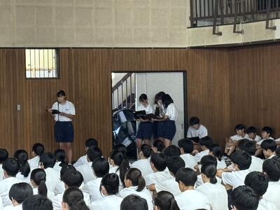 20日から始まる新人大会に向け、各部長から熱い決意表明がありました。部活ごとにカラーが出た内容でした。2年生中心に頑張ってください。