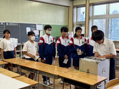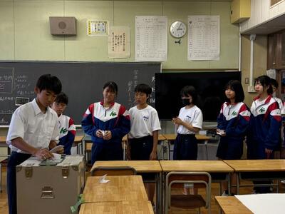 昨日までの選挙活動を経て、本日5・6校時に生徒会演説、投票を行いました。推薦人の応援のもと、候補者が校則やイベント、学校生活などについて熱い想いを述べてくれました。