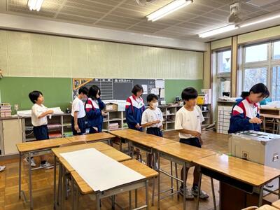 その後の投票では、1年生は初めて見る投票箱に感動していました。