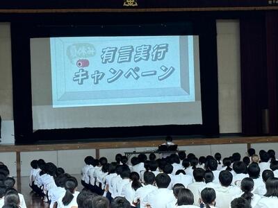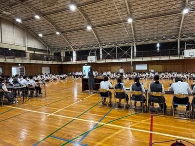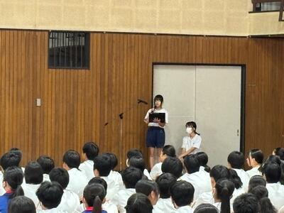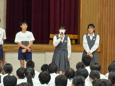 今朝は夏休みの生活についてを中心に、生徒会本部による生徒会朝会が行われました。クイズを交えながら楽しそうに確認したことを活かして有意義な夏休みになるといいですね。