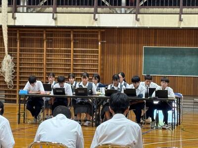 5・6時間目に生徒会総会が行われました。生徒会本部、専門委員会それぞれから昨年度の成果と反省、そして本年度の活動目標が報告されました。また、質問者から意見や提案があり、校則が一部変更されました。生徒主体で生徒のための生徒会が、本年度もより成長することを期待しています。