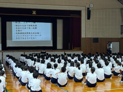 式後は、女子テニス部、硬式テニス、硬筆の賞状伝達を行いました。