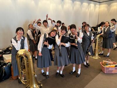 吹奏楽のメインの大会となる吹奏楽コンクール西部地区大会に出場しました。緊張している生徒、リラックスしている生徒、集中力を高める?生徒と、本番に臨む姿は様々でしたが、これまでの練習の成果を発揮し、素晴らしい演奏をしていました。演奏曲はトゥーランドットです。