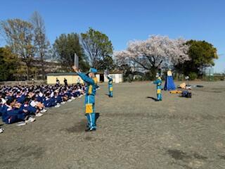 所沢警察署から災害対策課の皆様を指導者としてご来校いただき、本年度最初の避難訓練を行いました。避難までの時間は4'23"、"おかしも"を遵守し小声で仲間と正しい行動か確認しながら避難をしていました。警察の方からは、特に3年生が素早く避難し、集合場所で自分達が基準になるのだと意識して行動していて素晴らしいと評価をいただきました。