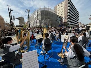 また、昨年度は雨で出演出来ず悲しい思いをしたハナミズキ祭りに吹奏楽部が参加しました。こちらも多くの方々で盛り上がっていました。6曲、さらにアンコール2曲を披露させていただきました。