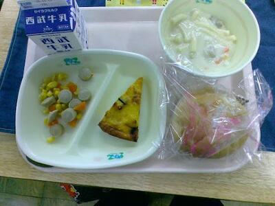 今日の給食は、ライスボールパン、スパニッシュオムレツ、マカロニのクリーム煮、コロコロソテーです。ライスボールパンは、しっとりしてて真ん中にある砂糖がすごく甘くて美味しかったです、スパニッシュオムレツは、かぼちゃ風味が効いていてすごく美味しかったです。マカロニクリームはすごく滑らかで食べたら止まらなくなりました。コロコロソテーはコーンとソーセージを一緒に食べるとすごく口の中でマッチしていました。自分からは、デザートをもっと食べたいです。