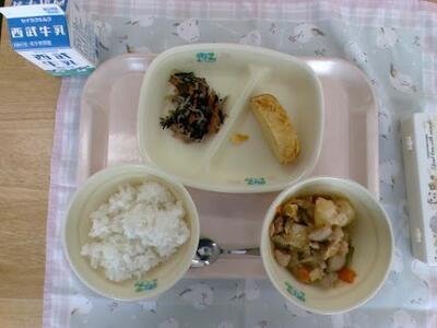 今日の給食は、ご飯、厚焼き玉子、牛乳、根菜と鶏肉のピリ辛焼き、ひじきの炒め煮でした。だし巻き卵のだしがとても強くて美味しかったです。根菜と鶏肉のピリ辛焼きとご飯もとてもあっていて美味しかったです。