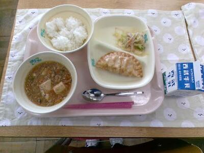 今日の給食は、ご飯、中華ラビリオ、マーボー豆腐、春雨サラダでした。中華ラビリオは、餃子より大きく中の具もぎっしり入っていて美味しかったです。マーボー豆腐は、豆腐とあんの相性がとても良かったです。春雨サラダは、キャベツがさっぱりした味付けで麺もツルツルしていて美味しかったです。