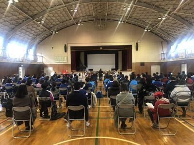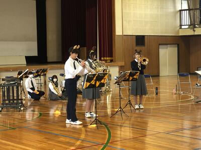 吹奏楽部が市内中学校の代表で、式の得賞歌の担当として、市民体育館にて演奏しました。式の最後にはミニコンサートとして曲を披露させてもらいました。