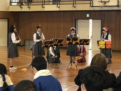 吹奏楽部によるクリスマスコンサートが行われました。これまでにないくらい多くの観客動員ということ、さらに、ノリの良い生徒が多く、クリスマスを先度って会場全体で盛り上がりました。