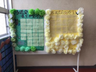 三送会が終わり、3年生からのお礼の言葉が掲示されていました。後輩達へ感謝、労いの気持ちを疎かせず、しっかりと表現するところが素晴らしいですね。