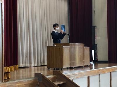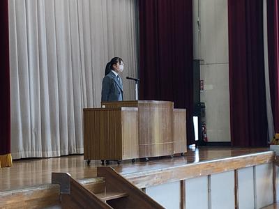 1・2年生の生徒と1年間の締めくくりとなる修了式を迎えました。代表生徒が修了証を校長から受け取り、全ての生徒が全過程を終了しました。その後、各学年から代表生徒が1年間の総括を述べてくれました。たくさんの成果と次のステージへと繋がる課題、そして引き継がれる伝統。1年間をしっかりと振り返り、新しい年度に繋げていきましょう。