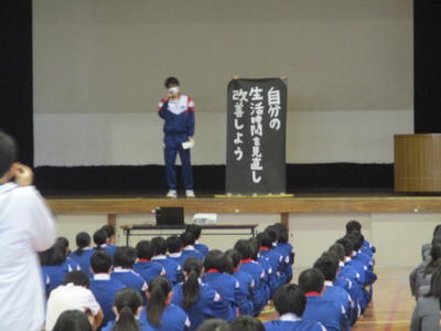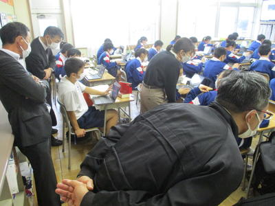 感染症の影響で延期となっていた学校評議員会をようやく実施することができました。前半は校内を回り生徒の様子をご覧いただき、後半は校長室にて教育活動の説明と協議を行いました。予定時間を超えてしまうくらいに生徒や学校についてお褒めの言葉をいただくとともに、対策や体制を万全にし安心できるようにすること、幼保小中の連携を深めることなどのご意見をいただきました。長時間ありがとうございました。