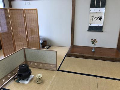 感染症の悪化による影響で中止としていましたが、久しぶりに開催いたしました。中止前は10人以上の参加者がいましたが、今回は3名とだいぶ減少してしまいました。掛軸は「開門」、お菓子は睡蓮です。生徒の様子の写真は撮れませんでした。