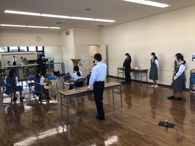 前半の金打六重奏『イベント・ホライズン/D.マッカーシー』が終わりました。出場した生徒からは「気持ち良かった」と満足のいく演奏をすることができた感想が出ました。間もなく、後半の木管六重奏『ダンス/C.ドビュッシー』を演奏します。後半も頑張って欲しいです。