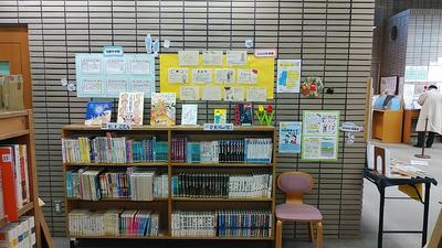 「秋の読書週間」の行事の一つとして、前期図書委員の作った本のPOPが所沢図書館椿峰分館に展示されています。
