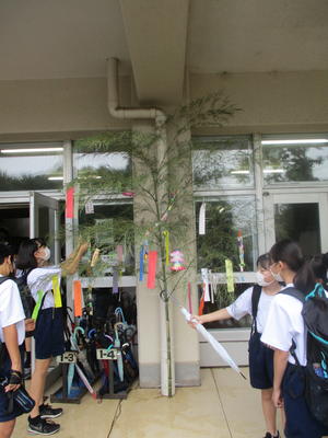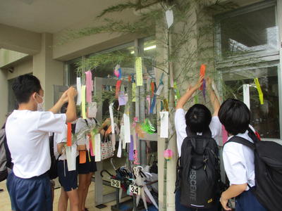 生徒会が中心となり、短冊書きを呼びかけたり、飾り付けをしたりしてくれました。ありがとうございました。