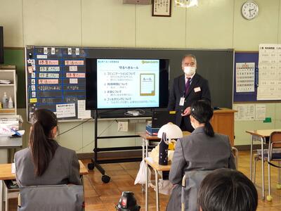 降り続く雪の為、生徒は早下校となりましたが、こちらも2年間行う事が出来ていなかった『北野中を語る会』を予定通りに実施しました。学校評議員、主任民生児童委員、PTA本部からの構成で、学校の様子をご覧いただいたり説明させていただき、ご意見をいただく会です。