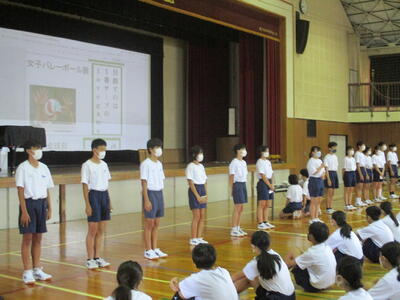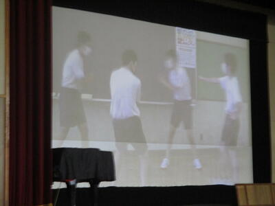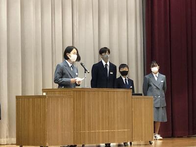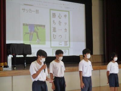 生徒会主催で生徒朝会にて24日(土)から行われる新人大会に向けた壮行会が行われました。3年生からは映像にて部活あるあると絡めて応援メッセージを。1・2年生からは部長が代表して川柳にして意気込みを発表しました。