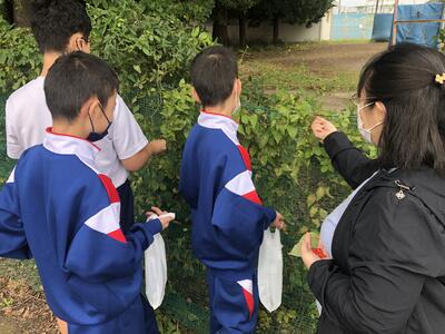 校庭の木々が色付き、実も実ってきました。葉や実を使い作品を作るため、材料を集めています。作品が完成したらお披露目したいと思います。