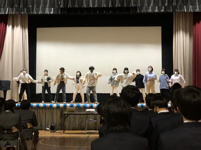 13日(木)の生徒会オリエンテーションに向けてのリハーサル中です。ここでは部活説明について確認しています。どのような発表か楽しみです。