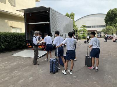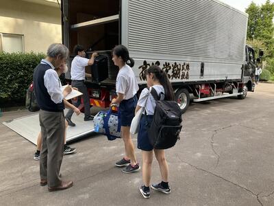 明日からの修学旅行に向けて荷物の積み込みをしました。