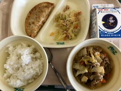 今日は3時間目くらいから給食にエビフライが出る事が楽しみで、6組の数学で長さの勉強をしていてエビフライの長さを比べようなんて話になってしまいました。野菜スープがパンや副菜と合っていましたし、チョコプリンは濃厚でバレンタインにひとときの潤いを与えてくれました。(タルタルソースがあることを見落とし、そのまま食べてしまった教頭)