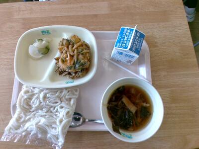 本日の事前の放送です。「本日は八宝菜が出る予定でしたが、鳥インフルエンザの影響で玉子は今日も出ません。玉子が出ないので、八宝菜ではなく、宝から玉子をとって八ウ菜です」ということで、七宝菜でもない衝撃的なメニューのお出ましでした。(八宝菜を作るのは苦労しますよねの教頭)