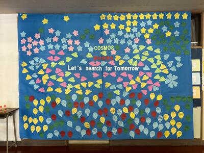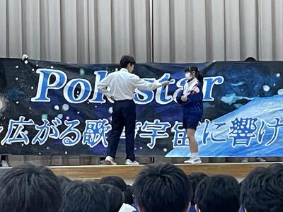 合唱コン本番を明日に控え、5時間目に前日指導を行いました。実行委員長と美術部部長から制作した幕に記された本年度のテーマの発表がありました。放課後には最後のクラス練習を行いましたが、緊張感と期待感が伝わってくる感じがしました。1階にあるメッセージボードもたくさんのメッセージで埋まってきました。明日はご来場お待ちしております。