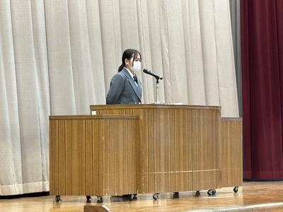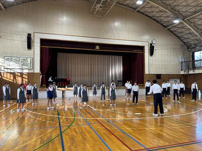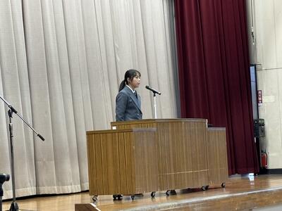 だいぶ寒い日になりましたが、体育館にて終業式を行いました。学年代表から話がありましたが、1、2年生は本年度の反省と次年度への0学期としてステップを踏もういう抱負が述べられました。3年生は卒業までの期間を楽しく、大切に過ごすという期待の言葉がありました。