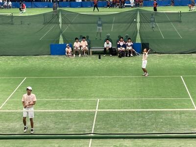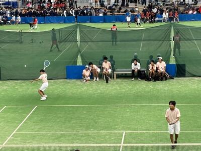くまがやドームで行われている男子テニスの新人大会県大会の団体。まずは一回戦を突破しました。