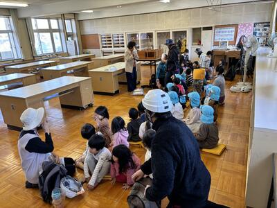 避難訓練として、あかねの虹の園児の皆さんが本校まで移動し、被服室で非常食や水をいただくという訓練を行いました。静かに移動したり、お話をよく聞いたり、気さくに話してくれたりする子ばかりで感心しました。