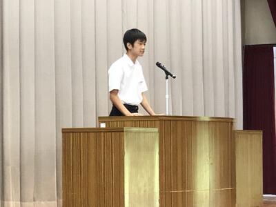 40日の夏休みが終わり、昨日より2学期が始まりました。始業式では3年生代表生徒より、各学年に向けてこれから意識して頑張ってもらいたいことの話がありました。