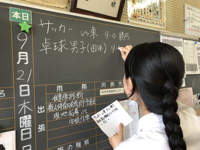 今年度より県教委の新規事業としてスタートした『彩の国かがやき教師塾』として、本校卒業生が本日から体験活動を行っています。業務や生徒との関わりから、専門的、実践的に学んでもらえればと思います。早速、所属していた剣道部の生徒と交流したり指導したりする姿を見て、将来が楽しみだと感じました。