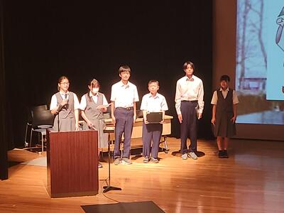 また、他校の生徒の作品を鑑賞する中で、たくさんの刺激を受けたようです。運動部のように練習試合や大会などがないため、普段なかなか他校の生徒と関わる機会がないのですが、美術部の活動の実際をシェアしたりなど、交流の場としても大変良い機会であったと思います。美術部では、これから合唱コンクールのスローガン制作が始まりますので、美術部展で得た学びを活かしてほしいと思います。