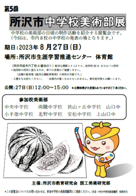 8月27日(日)に所沢市生涯学習推進センターにて、「第5回 所沢市中学校美術部展」が開催されました。
