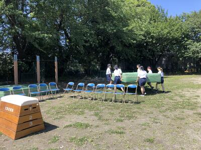 風が強く、途中までにしたり苦戦したりしましたが、進んで仕事を見つけ、行動する生徒が多く、スムーズに準備ができました。明日もどのようなドラマが見られるか楽しみです。