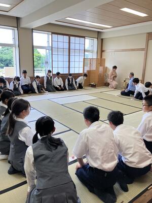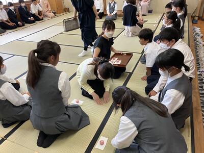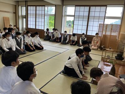 生徒からの感想は、「お茶とお菓子が美味しかった」「足が痺れた」「作法を知ることができてよかった」などたくさんの感想がありました。また、保護者のみなさんが点ててくださった心がこもったお茶に感謝のことばを伝える生徒の姿がありました。