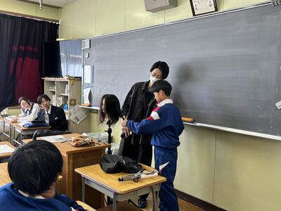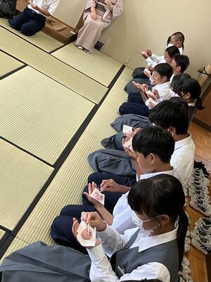 緊張している生徒の姿が印象的でしたが、お菓子とお茶をいただくと、緊張も和らぎ、楽しいひとときを過ごすことができているようでした。