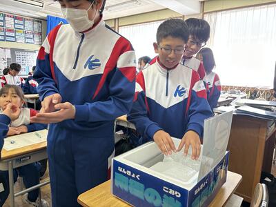 4の業種の方々にゲストティーチャーとしてお招きし、職業について学びました。4万年前にできた南極の氷を触らせてもらったり、専用のハサミで髪をカットさせてもらったりと、体験を交え、貴重なお話をたくさん聞かせていただきました。