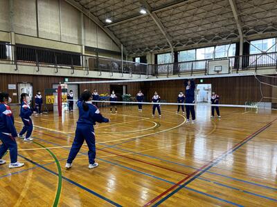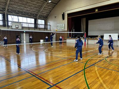 1年生女子はバレーボールの簡易版として、キャッチバレーを実施しています。本日は2時間目で、キャッチバレーの特性やルールを掴み、生徒同士での掛け声やプレーの質が向上してきました。