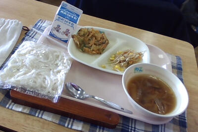 本年度最後の給食でした。栄養バランスやバリエーションなど工夫作り配達し続けてくれた給食センターの皆さん、記事を書き続けてくれた給食委員の皆さん、ありがとうございました。(これからも給食の繁栄を期待する教頭)