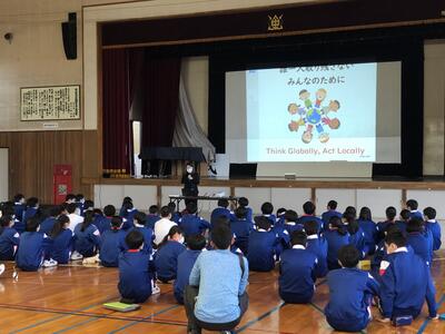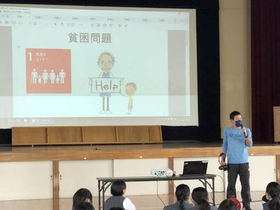 総合的な学習の時間の『国際協力とSDGs』としてJICAの方々からお話をいただきました。まず、体育館にて学年全体で、もし、日本が海外とのやり取りが無くなったら何を食べるのことができるのか?震災があった時に協力してくれた国々など、国際協力の大切さが具体的に分かり、そして実感することがてきるお話を沢山いただきました。