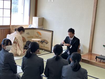 お点前をやっていただいているときには真剣に見学している姿にはさすが3年生と最上級生と感じました。