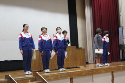 環境委員会からは先日行われた清掃コンクールの表彰がありました。生徒同士でもよいことを讃えあえることは素晴らしいですね。