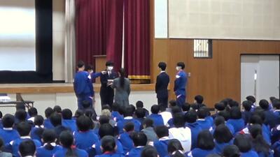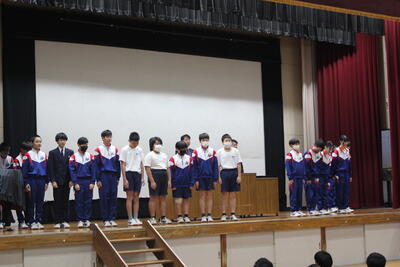 人権作文、書き初め、剣道、卓球の表彰をしました。おめでとうございます。