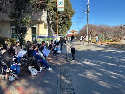 本日、所沢シティマラソンが行われましたが、吹奏楽部が演奏でランナーを応援しました。
