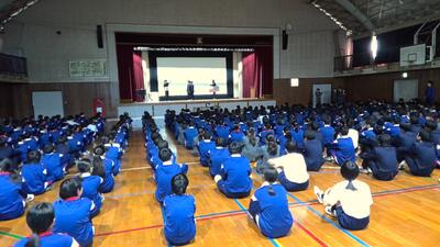 校長先生からは、ご自身の中学生時代の学活での出来事のお話でした。「なぜ人は学ぶのか」という議題に、ある友達が「優しくなるため」と答えたそうです。(ex:学ぶことで人を助けることができるから)そこから話し合いが深まっていったと。学ぶことの意義を考えて皆さんの可能性を広げていって欲しいとメッセージがありました。