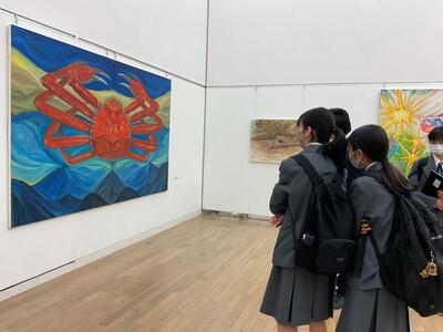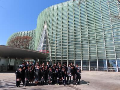 今年も美術部は春の美術館見学に行ってきました。春は六本木で「東京五美術大学 連合卒業・修了制作展」と、「現代美術」に触れ、2年生は自らの卒業制作に向けた準備を、1年生は多様な美術作品に触れ視野を広げます。