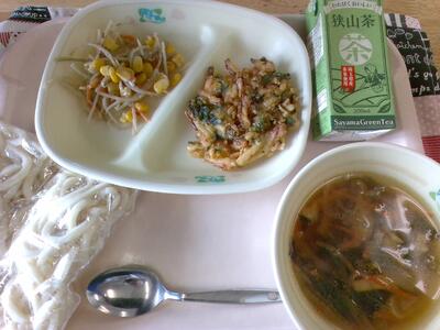 今日の給食は、お茶、地粉うどん、鶏南蛮、野菜のかき揚げ、ごぼうサラダでした。地粉うどんは安定の美味しさで、かき揚げと一緒に食べても良し、そのまま食べるも良しで毎月楽しみにしている給食なのでとても気分が上がりました。ごぼうサラダは食べごたえがあって、それをコーンが食感の良さを引き立たせていて美味しかったです。